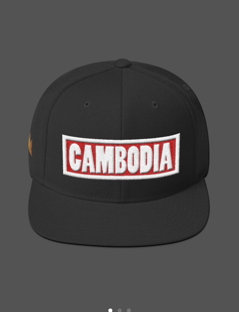 Cambodia text box w Gold Angkor wat side logo- BUY 2- 10% OFF! USE CODE SNAPBACK10